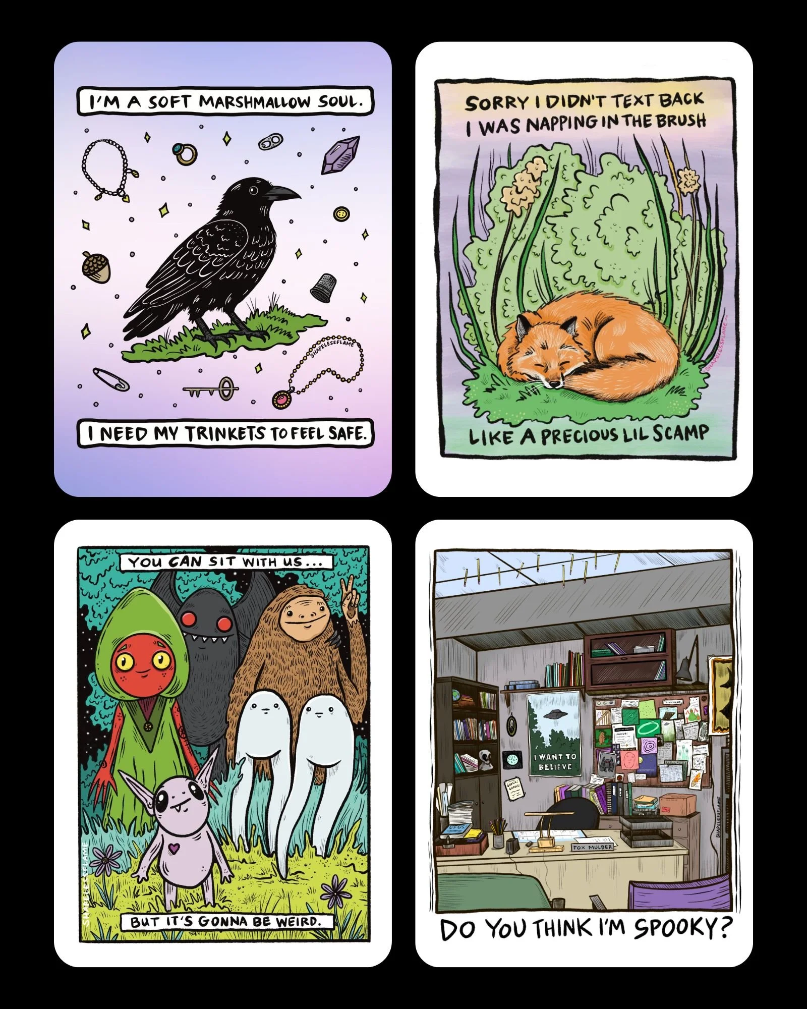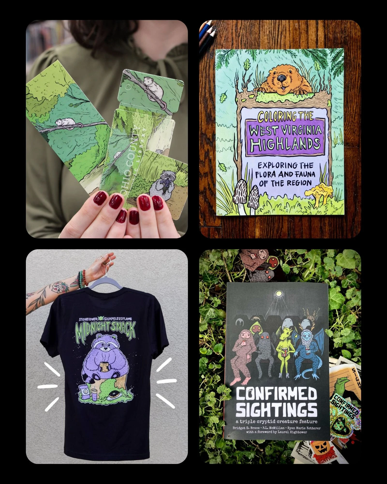 Cartoon critters and cryptids drawn with love by human hands in rust belt Appalachia.